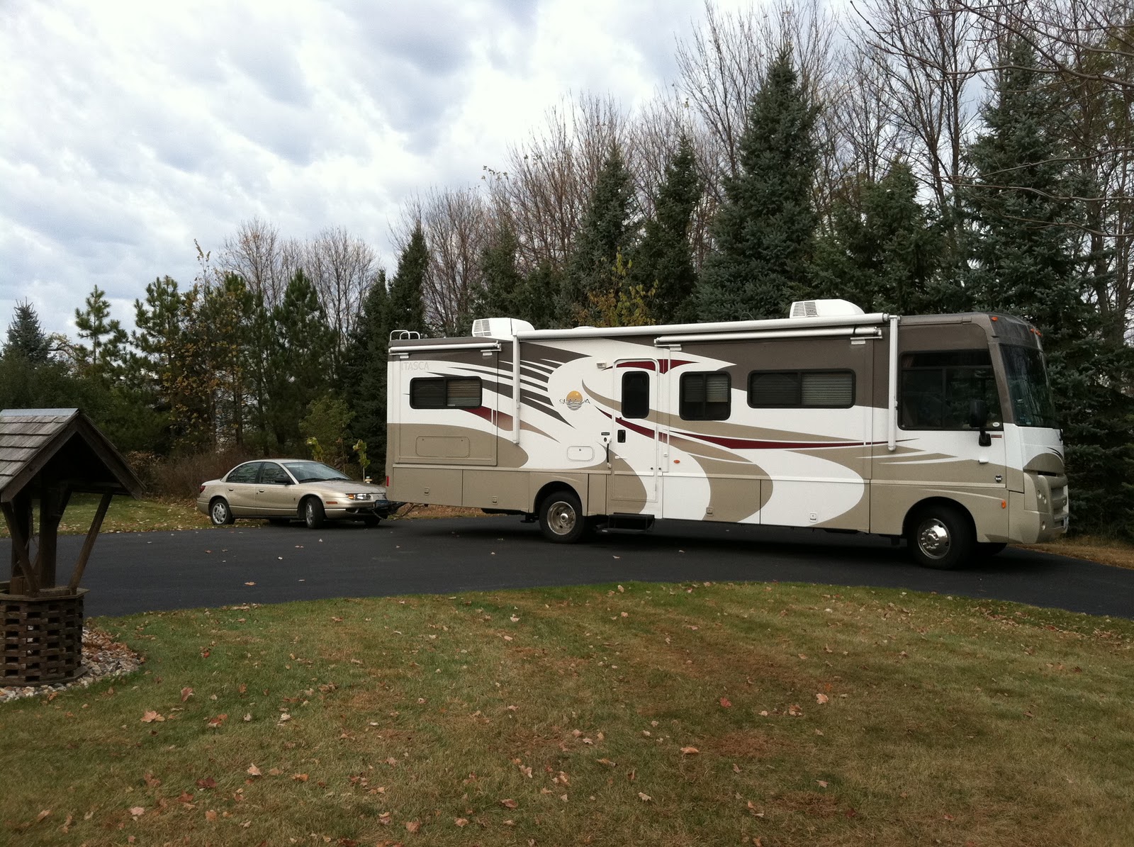 It’s been a nice cool day, good day for a drive. But we were tired from the packing and a restless sleep, so we didn’t get as far as we planned. We are just north of Madison, Wisconsin, and it’s getting dark so we are parked for the night. My Internet connection is very slow here and I’m running on battery power so I have to make this a quick post.