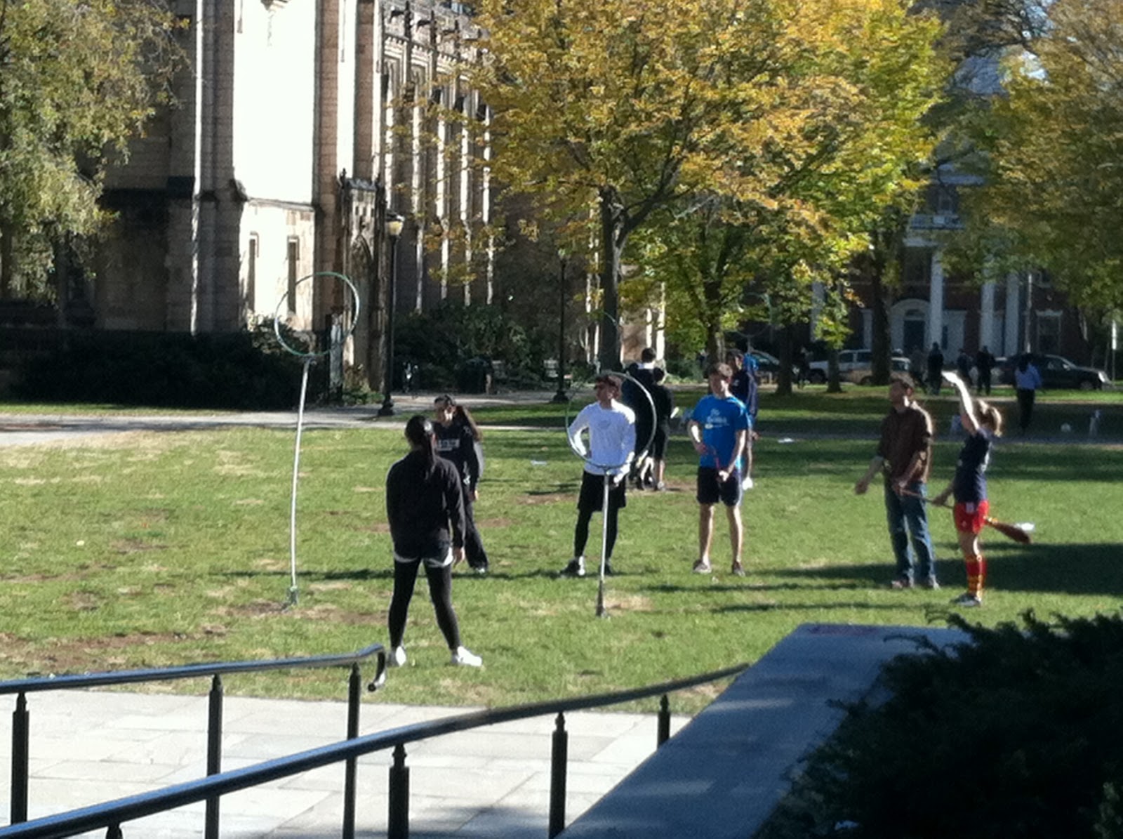 While walking thru campus we came upon a group of students playing Quiddich…as in the game played in the Harry Potter series. I’ve never seen this before and thought it was quite amusing. Notice a few of them are riding brooms.