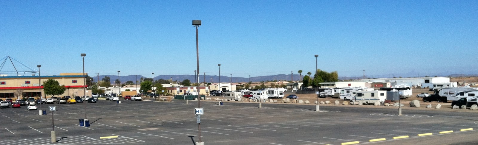 We really didn’t go very far, only a few miles, into California. Yuma is just across the bridge. So we’re now in the Pacific Time Zone. There is a casino here with a very large parking area for RVs to park for free. So that’s where we are tonight. I think there are at least 50 other RVs here with us.