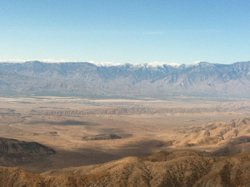 I wish the photographs could portray the awesomeness of what we saw. The picture below shows just a small portion of what we were looking at. The haze in the valley is due to moisture, dust, and smog from Los Angeles. This was a “clear” day. If you look in the center of the picture, there is long ridge in the valley floor. This is part of the San Andreas fault, the one that will probably break California off into the ocean some day, so they say. 1906 was the year of the big quake that did a lot of damage. We tried to drive down to see it closer, but there are no roads. You can hire a jeep tour in Palm Springs if you want, but we didn’t.