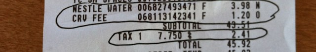 | CRV fee $1.20 (taxable!) 7.750% Sales Tax |