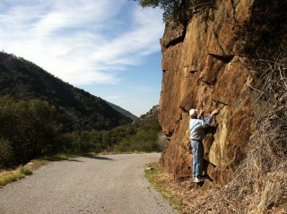 | Bernie thinks he can do some rock climbing. |