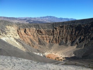 Ubehebe Crater is a steam-explosion crater, created when water suddenly flashed to steam. Half mile wide and 500 feet deep.