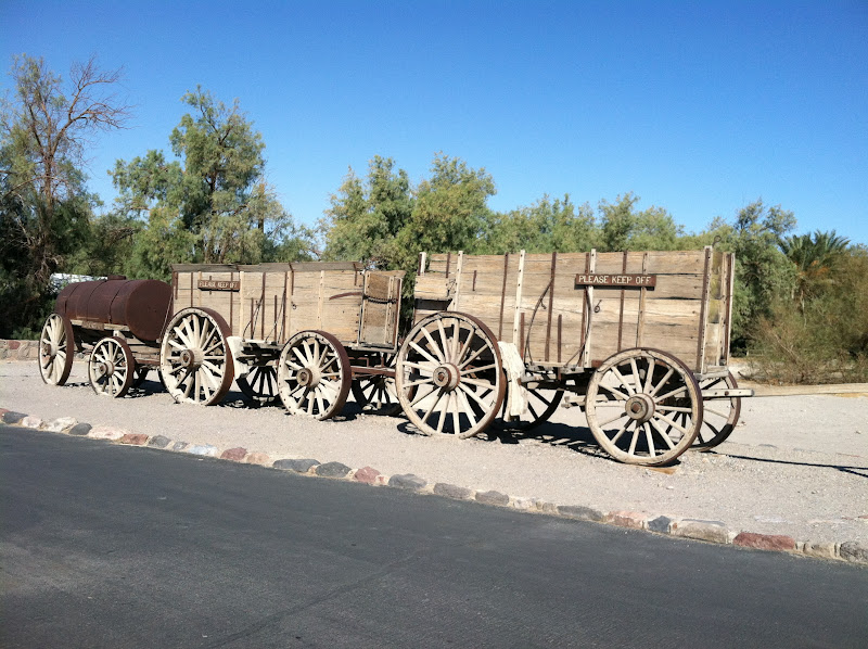 Borax has a huge presence here. Prospectors found borax in 1881, and the Harmony Borax Works began to process ore in 1883. They used 20-mule teams to haul borax 165 miles to the railroad town of Mojave. The teams averaged two miles an hour and took about 10 days to get there. There is a museum here that has loads of information and artifacts from that time period.