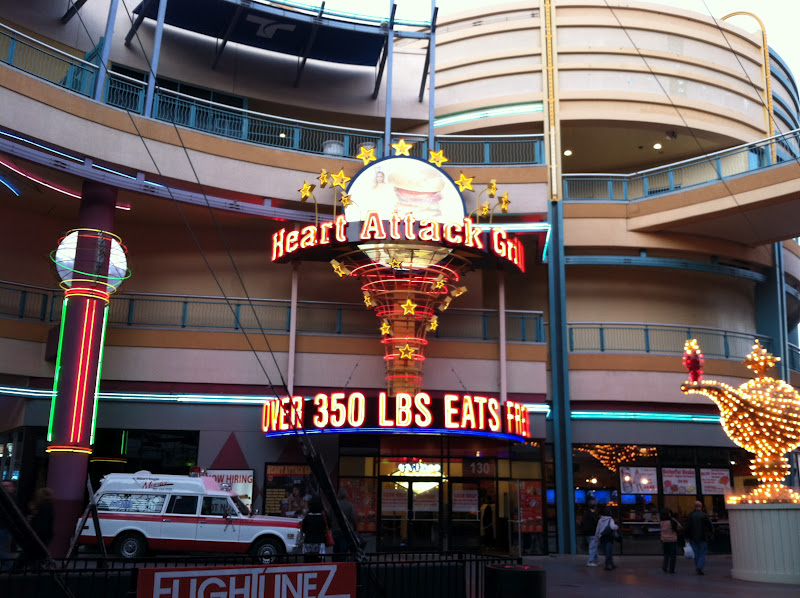 We did not eat at the Heart Attack Grill, but saw it from the outside. See the ambulance sitting out front? The customers all wear hospital gowns while they eat. The menu us scary!