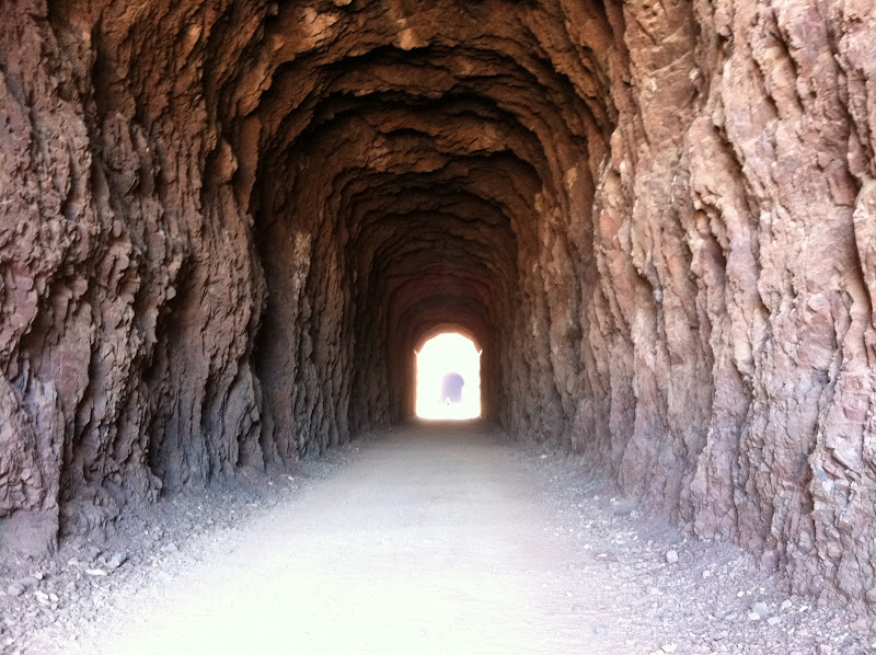 We walked an old railroad bed trail that took us where the train used to deliver supplies to the Hoover Dam. It’s a three mile trail which takes you around the mountains and through five tunnels and by some beautiful scenery overlooking Lake Mead.