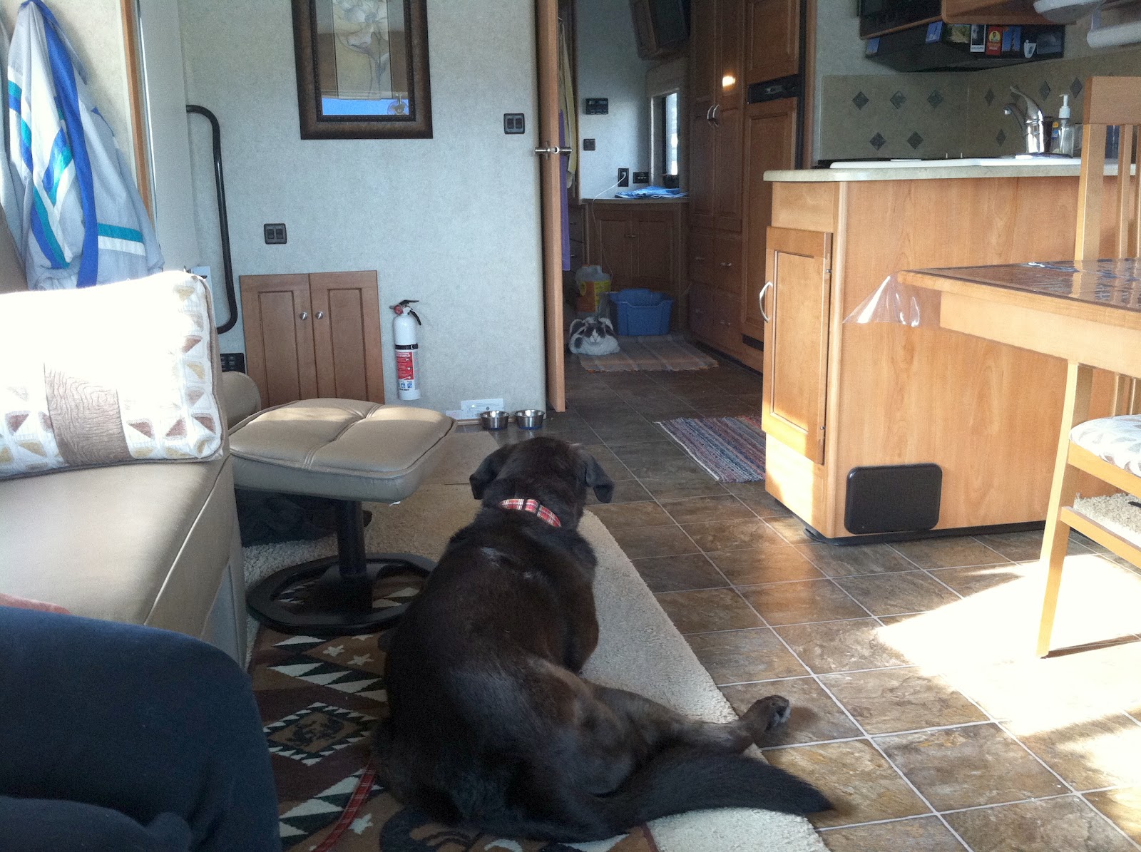 At closing time our rig was not yet finished. It turns out a small water leak we had in the front left corner requires the windshield to be removed, resealed, and replaced, and they didn’t have time to finish that today. Also, they had done some damage to one of the inside walls while they were working and they will have to replace an internal pannel tomorrow too. So, that means we will be staying another night in their campground.
