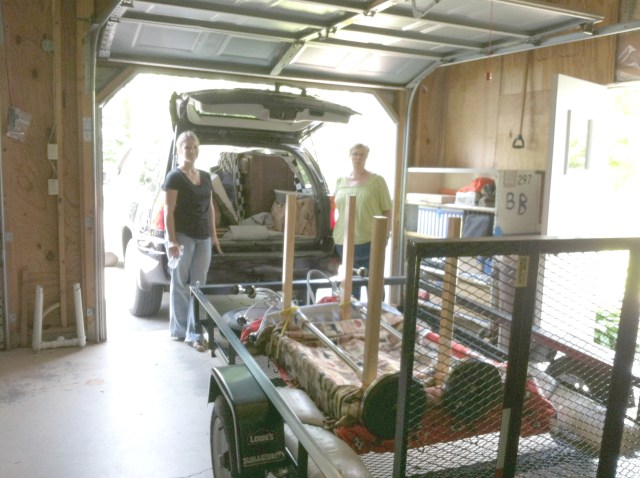 I didn’t get a picture of every load that went out but I did remember to get this one of my sister and her friend as they were ready to leave with a SUV load and a trailer load of furniture and other goodies.