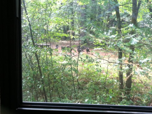 A family of wild turkeys greeted us this morning. I got a picture through the window, but as soon as they heard a noise from us they scurried off.