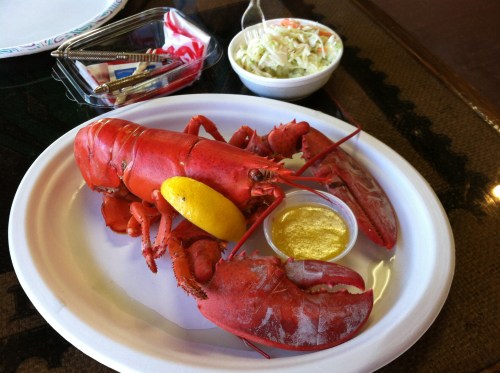 We ate at a place called the Lazy Lobster and shared a lobster, lobster bisque, and blueberry pie.