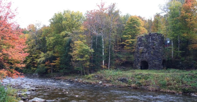 More rain and clouds, it’s just a gloomy wet day. After we got settled in our new spot we went exploring. Bethlehem, New Hampshire, is a very small town and not as touristy as other towns we have visited lately. One thing we did find here was the remains of an Iron Furnace, the only blast furnace still standing in New Hampshire. There is a small interpretive center and a small parking lot and the furnace can only be viewed from across the water as it is on private property.
