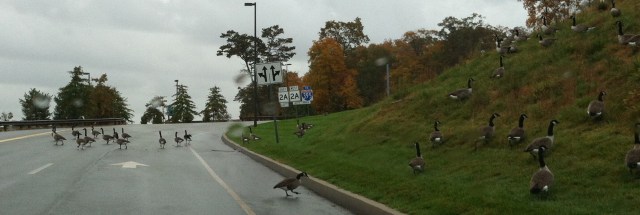 Ugh….rain all night and rain all day. This morning we did get out to the grocery store for some needed supplies. In between the raindrops I managed to get a few pictures. These Canada geese greeted us on our way to the store. I think this is the first flock of geese we’ve seen out here.