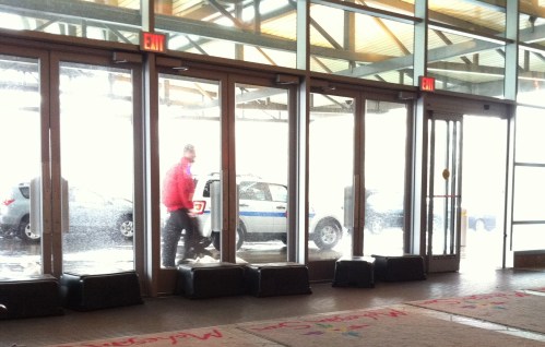 The only place to see the weather activity is through the Valet Parking entrance. The Governor of Connecticut has closed the state highways, but people were still wanting their cars. The Valet drivers were getting soaked and blown away as there was a wind tunnel effect under the awning there.