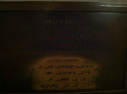 HELEN KELLER AND HER LIFELONG COMPANION ANNE SULLIVAN MACY ARE INTERRED IN THE COLUMBARIUM BEHIND THIS CHAPEL