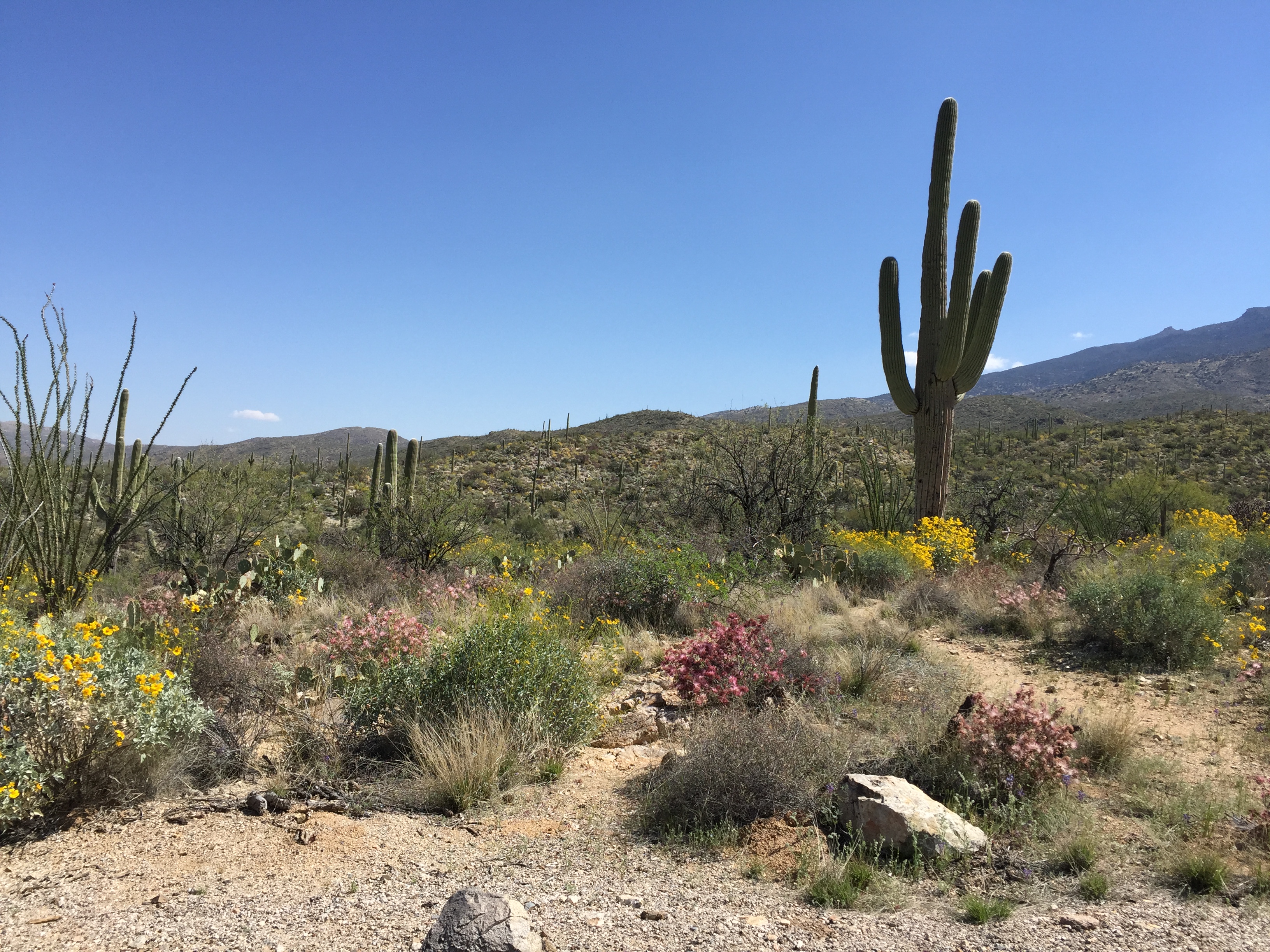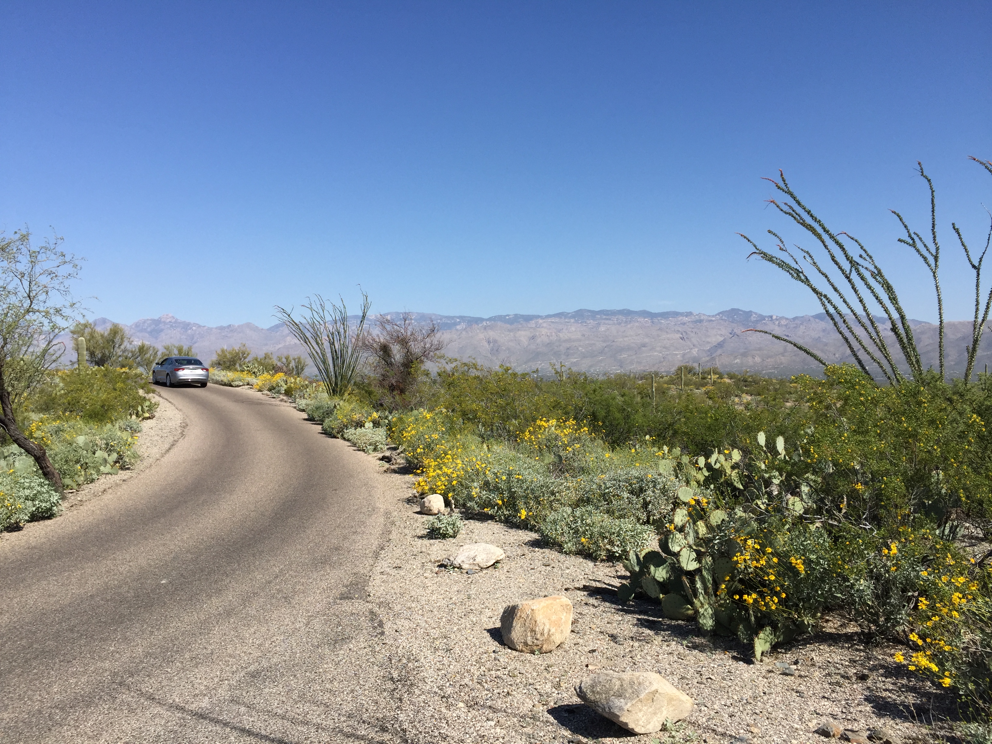 70 percent of the park is designated as wilderness area with 130 miles of hiking trails. Bernie didn’t feel up to hiking, so we just drove around the Cactus Forest Drive, an eight-mile paved scenic drive that winds through a saguaro forest. Here are some pictures from our drive: