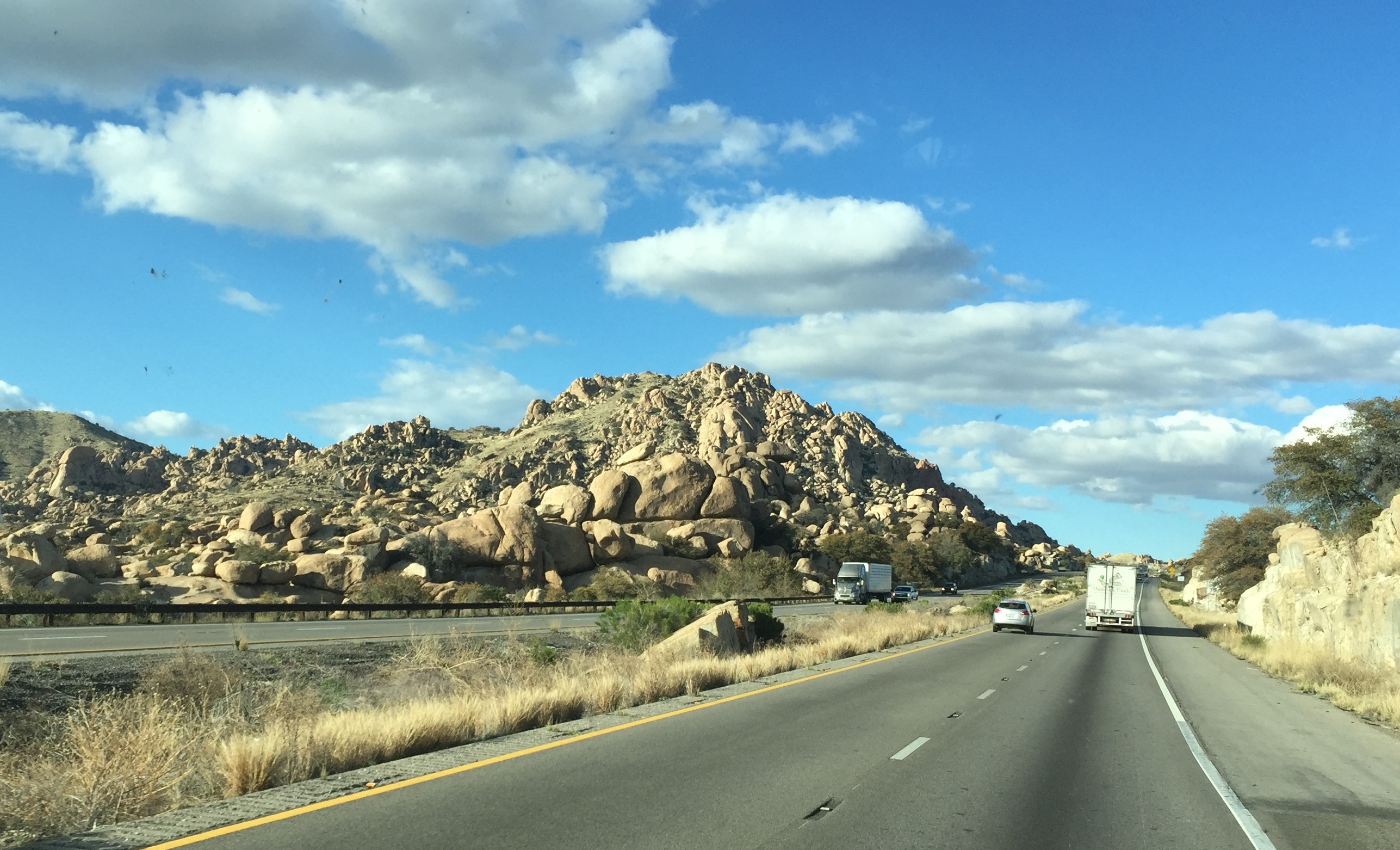 We left Tucson behind us today, beginning our trek east. After stopping in Benson one last time to visit with Bernie’s cousin, Cheri and Phil, we continued down Interstate 10. We are not looking forward to the next few days of driving this route. Getting through the desert from this point on to Louisiana is long and dull.