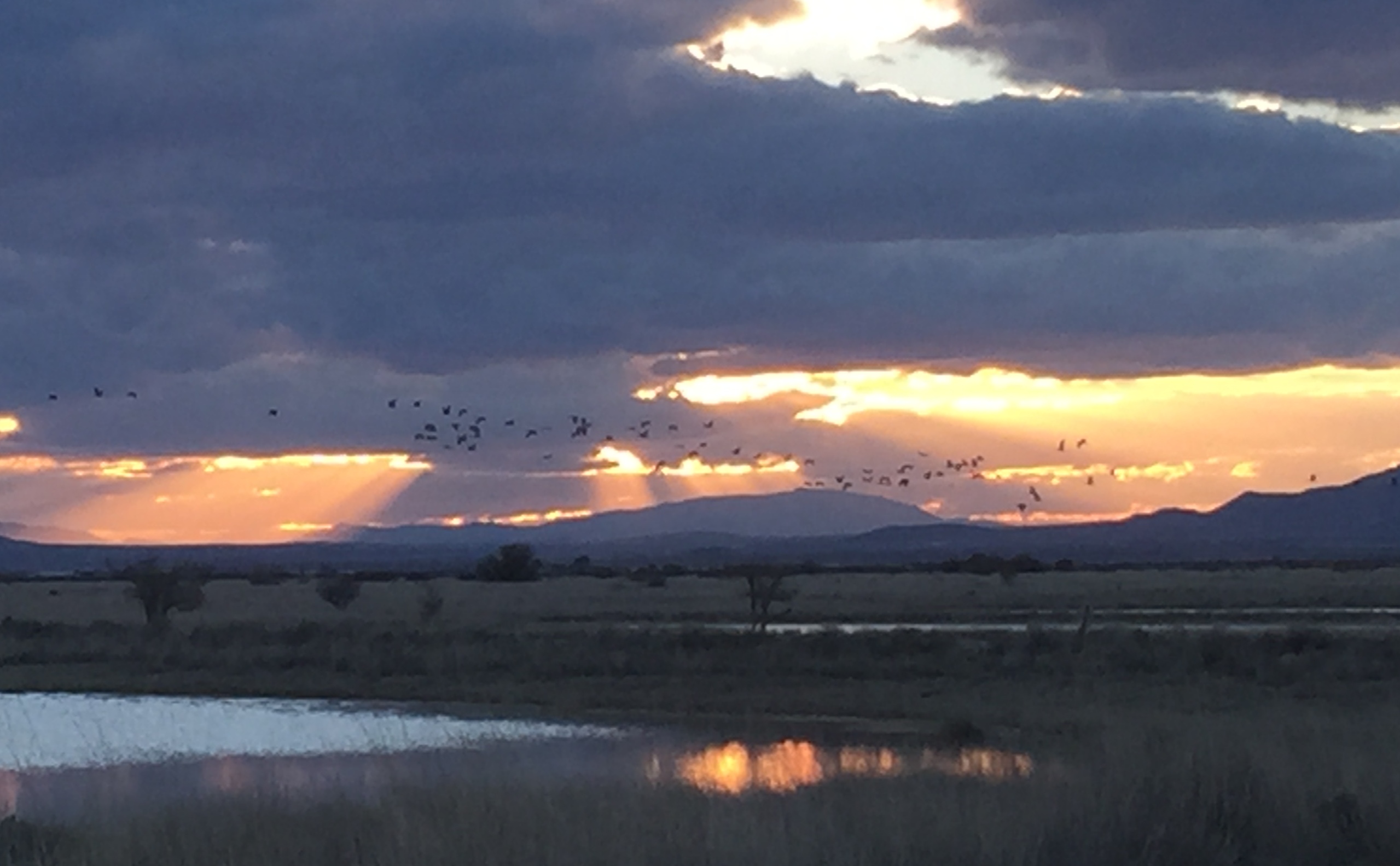 Sandhill Cranes can be seen wintering over very near here. We could hear them from the RV park. We got directions from the owner and went to have a look. The sun was dropping and we were losing light quickly but I did get a picture of a few of the thousands of Sandhill Cranes flying by. They made quite a racket.