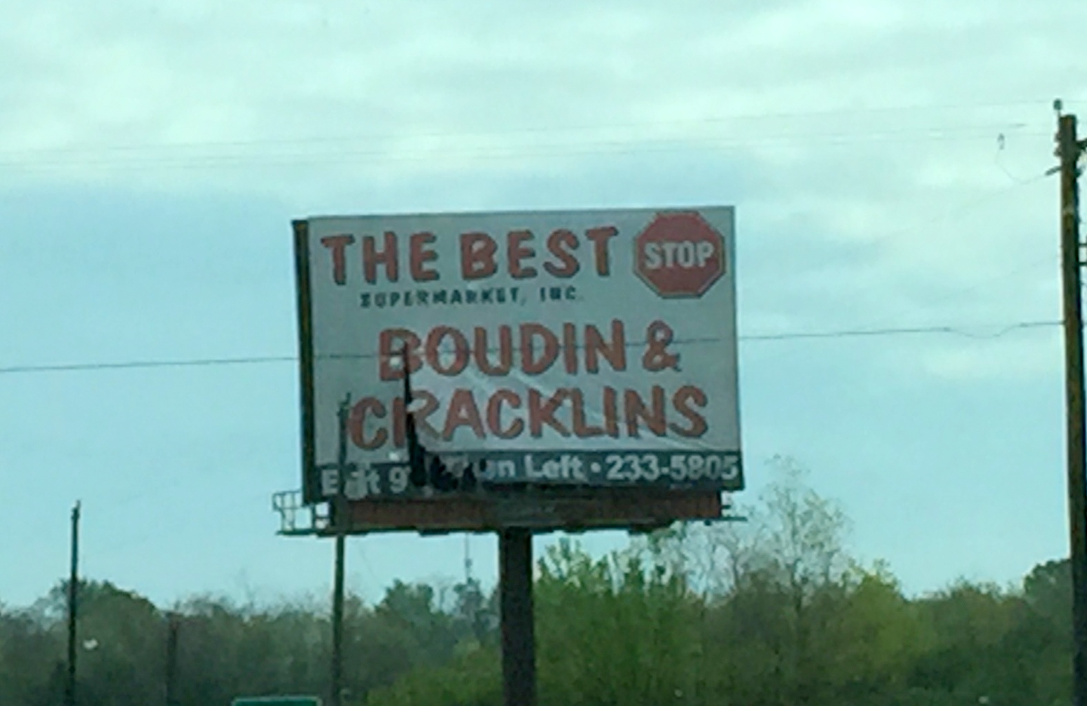 As we drive east on I-10 we noticed several signs boasting who makes the best Boudin & Cracklins.