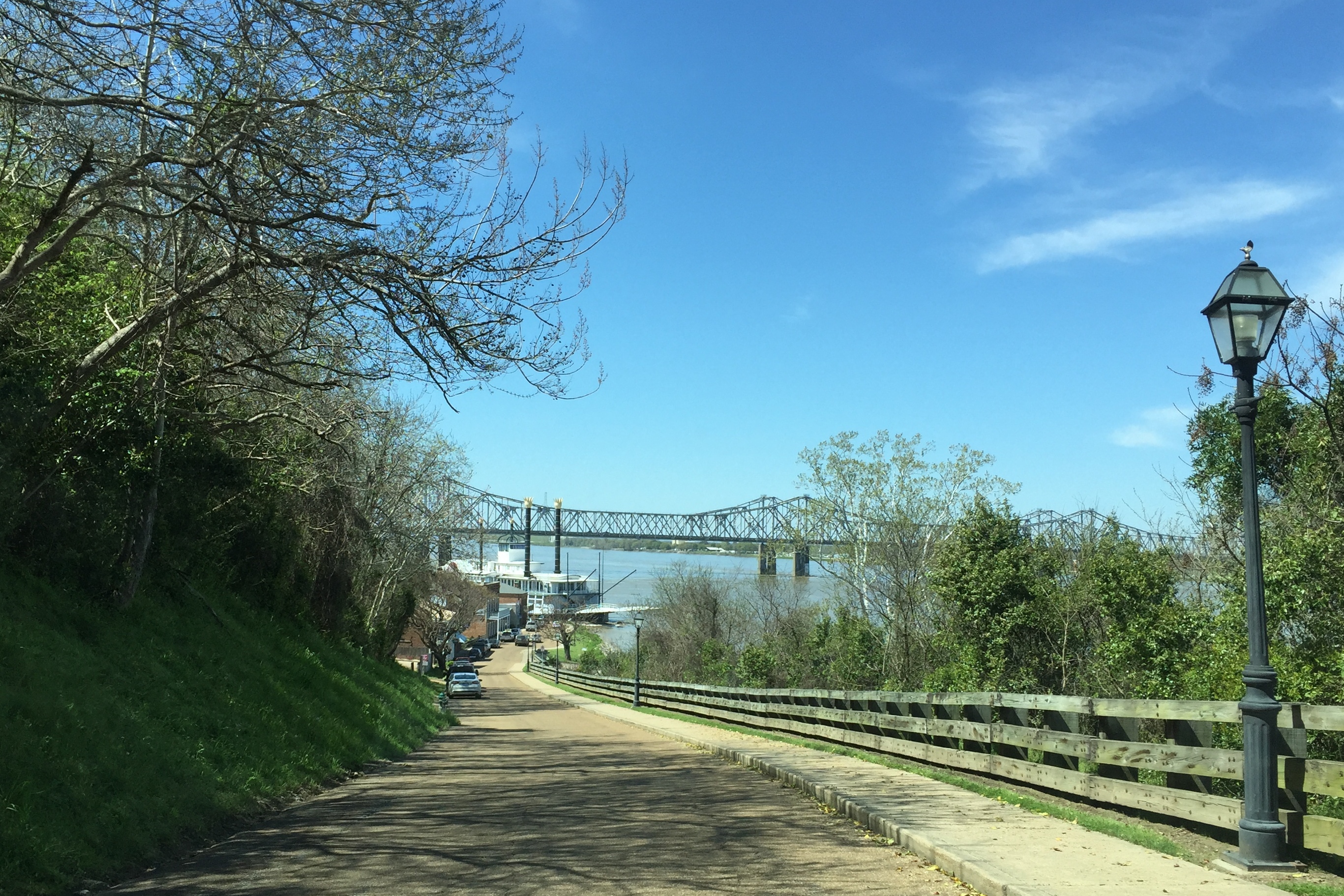 We had lunch at the Magnolia Grill at Natchez Under-the-Hill, Bernie had the catfish which came with hush-puppies and some boiled greens, and I had a bowl of gumbo, which was delicious. Then we walked around the corner to have a look at the Isle of Capri, a stationary steamboat casino.