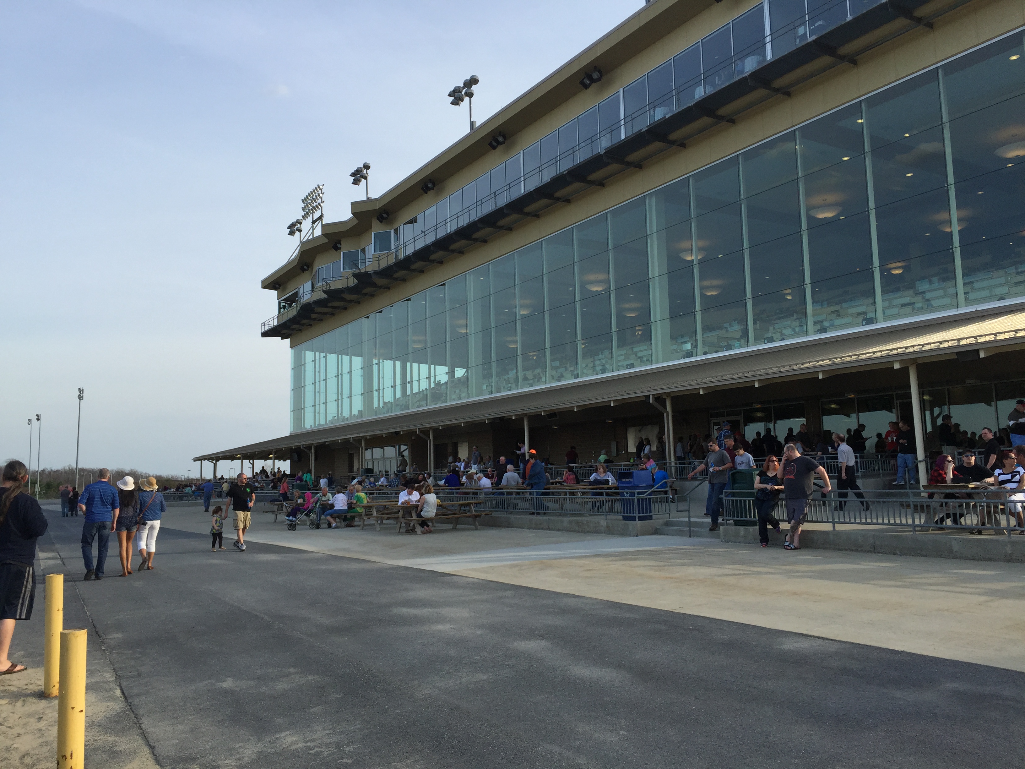 We only stayed for two of the eight races scheduled for tonight and did not do any betting. It was interesting, seeing several people studying the race program books and papers with all the statistics and deciding which horse to bet on. I wonder how they made out.
