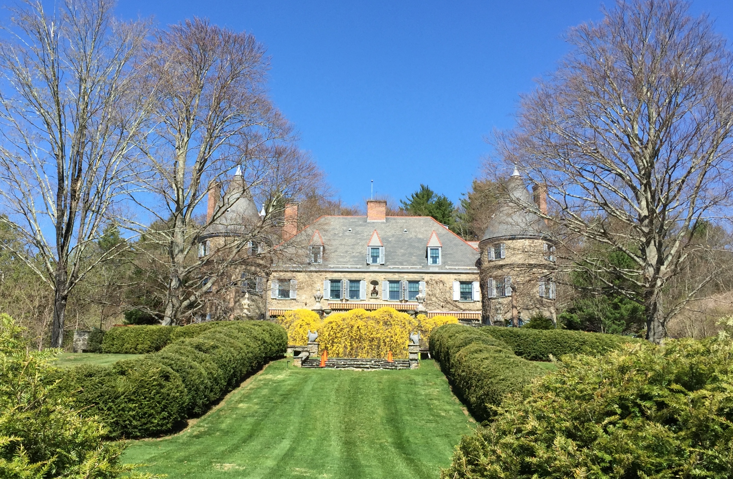 We are in Milford, Pennsylvania now. Here we find Grey Towers National Historic Site. Built in 1886, the house and 102 acres was donated (in 1963) by the Gifford Pinchot family, to the USDA Forest Service, the federal agency founded by their father.