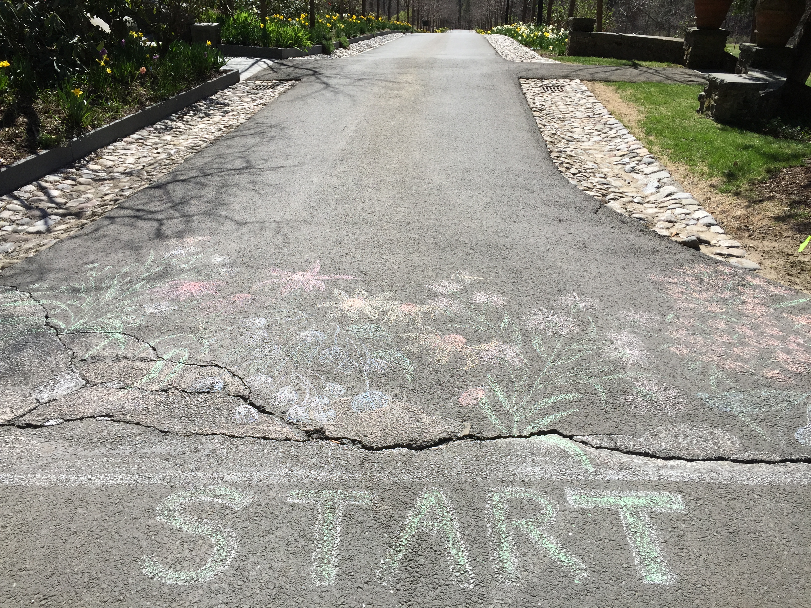 The April 25 Earth Day 8k Run in Milford began here. Someone made the start line very pretty.