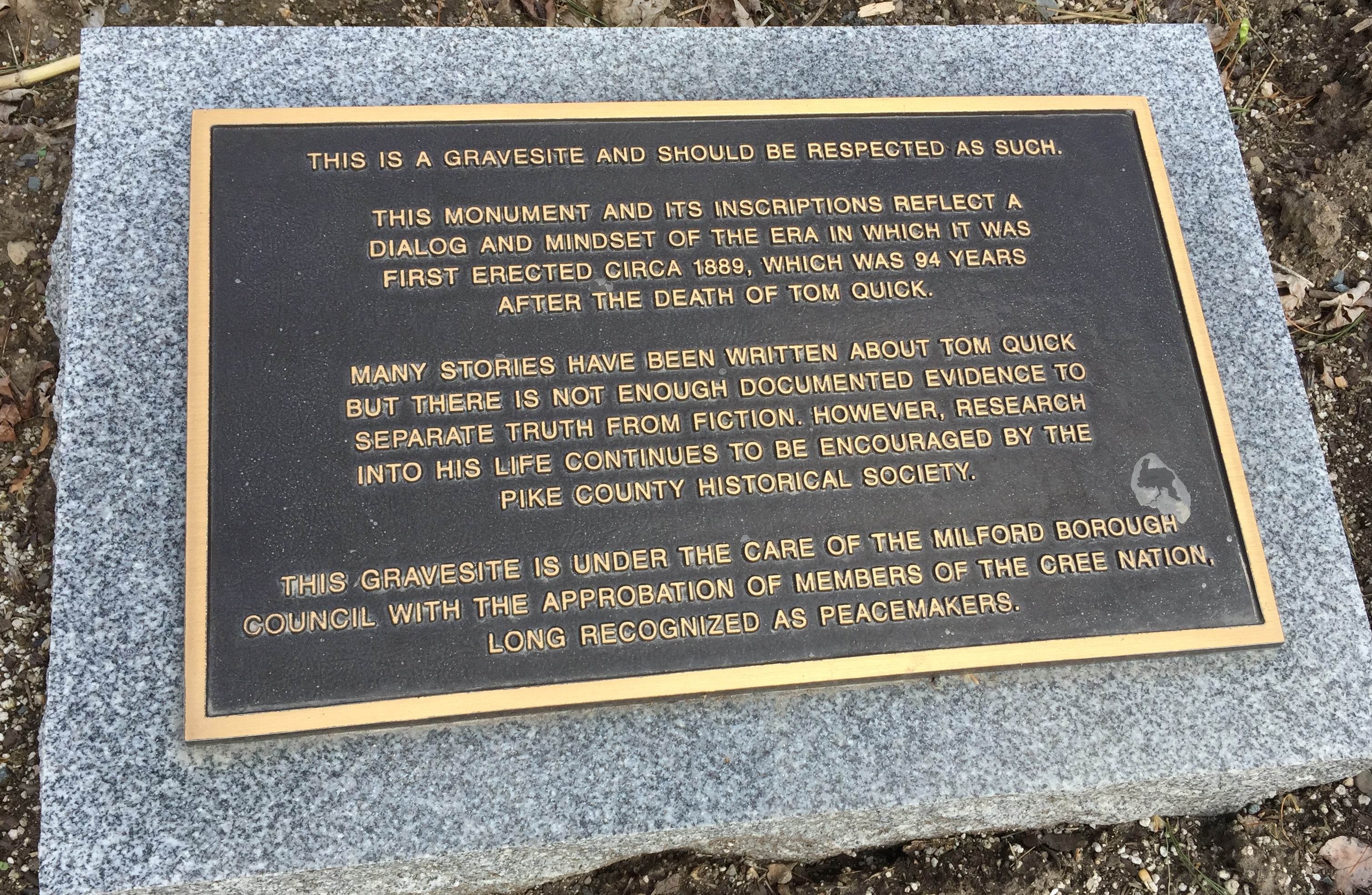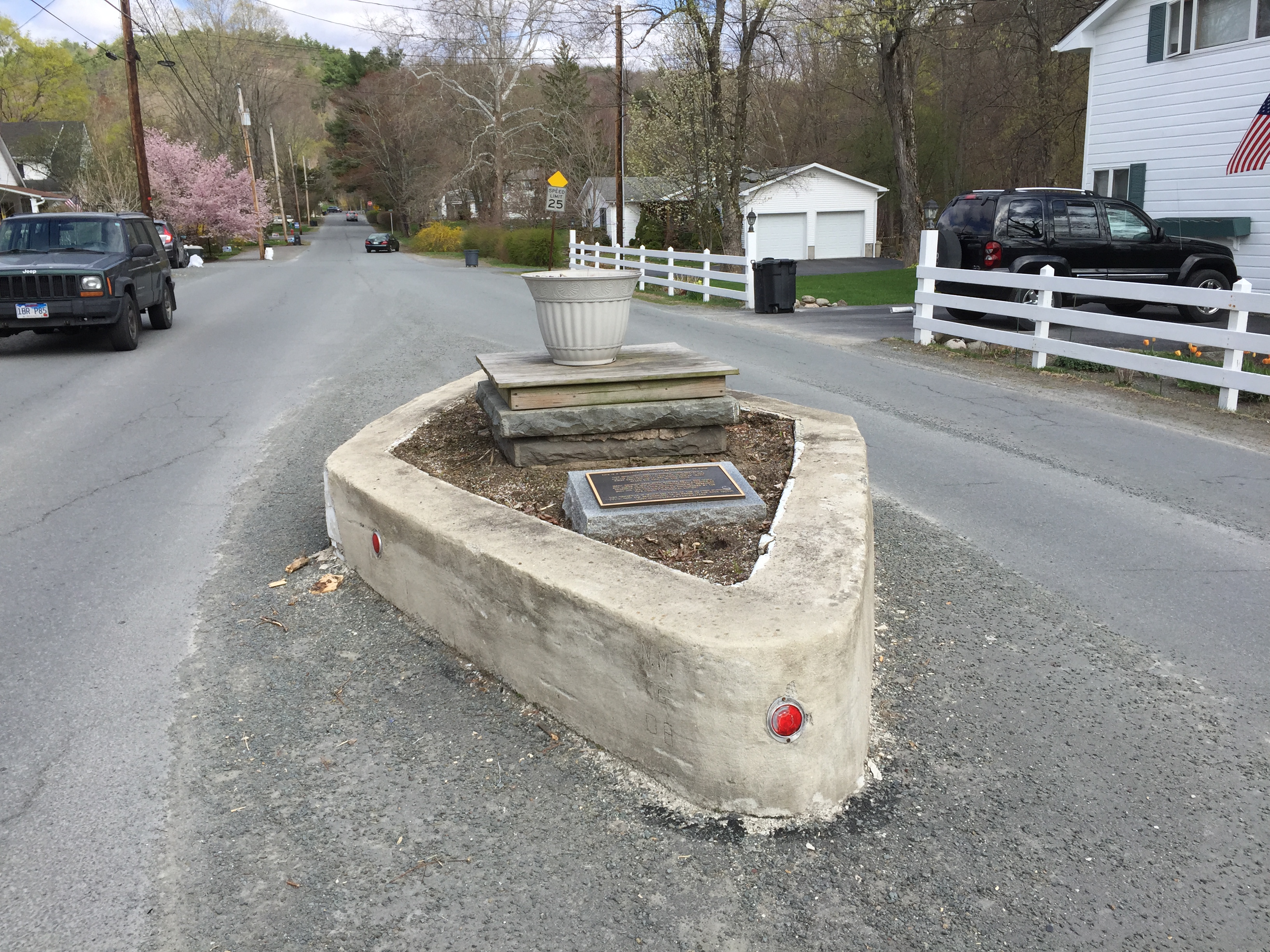 The first one we found is in the middle of a side street in Milford PA. This little traffic island is the burial site of Tom Quick who killed a lot of Indians in the late 1700’s.