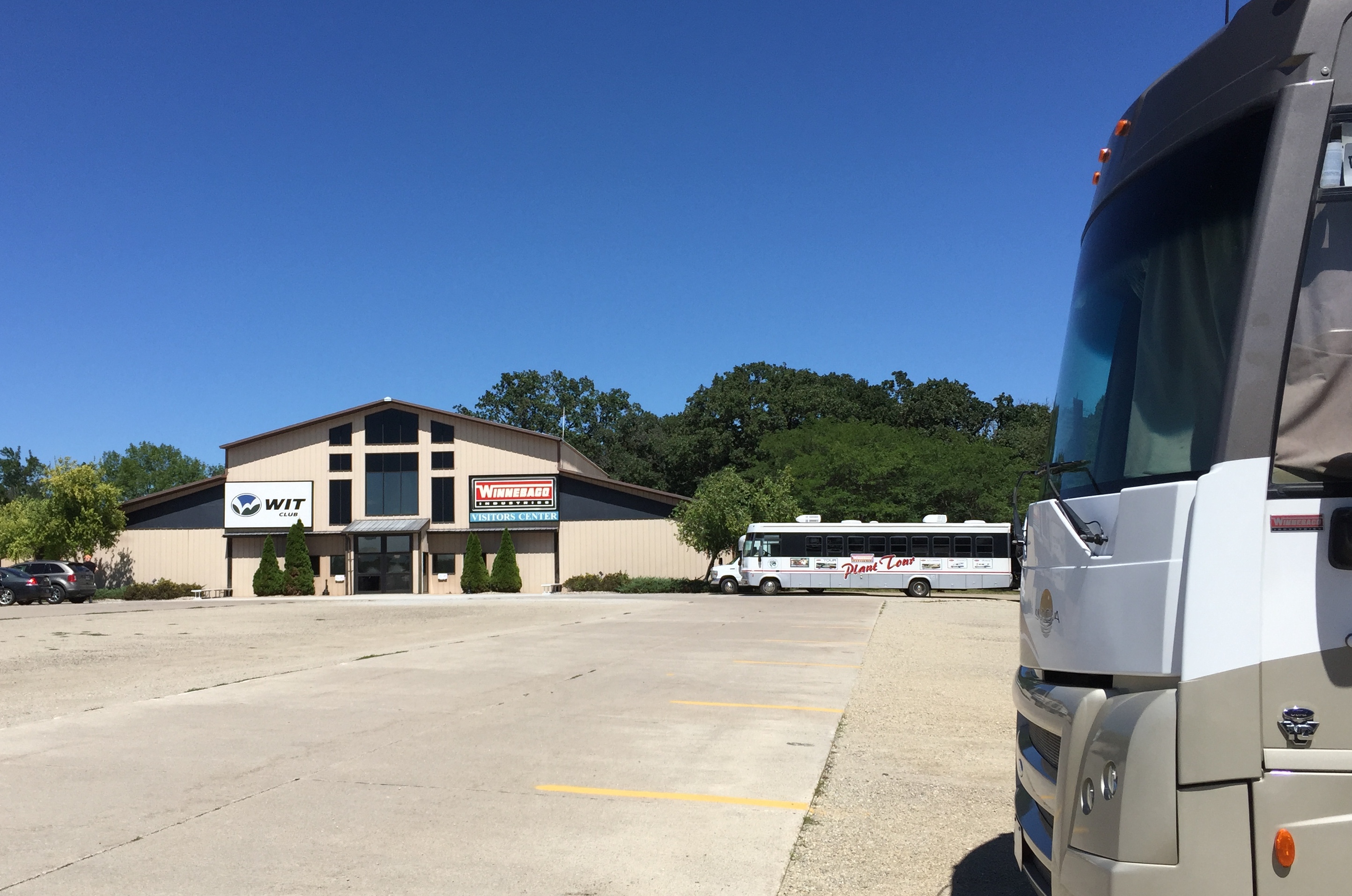 Leaving Albert Lea this morning we went south into Iowa to Forest City to the manufacturing plant where our motorhome was built. They have lots of RV parking spots with electricity for its customers. We selected a spot in the parking lot of Winnebago Industries Visitor Center and went inside.