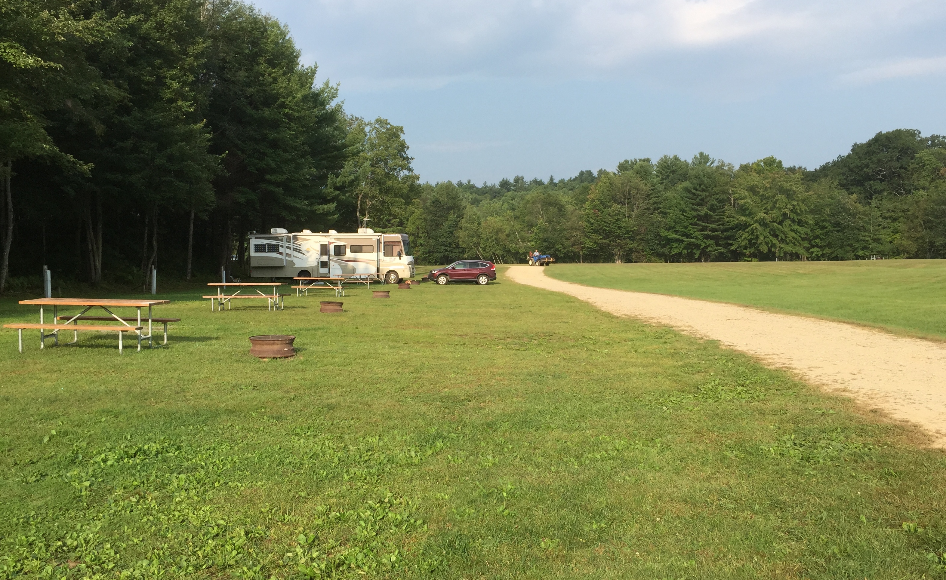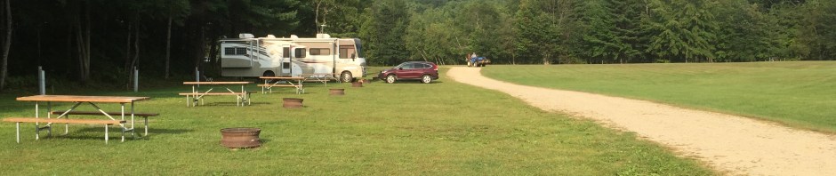 We are staying at Ashuelot River Campground. What a nice place, for sure this will be our home whenever we come to visit the kids. It was plumb full over the Labor Day weekend, but once the holiday was over everyone went home and here we are all alone. School has begun and the camping season is winding down. Since I took this picture a few more have arrived for the weekend.