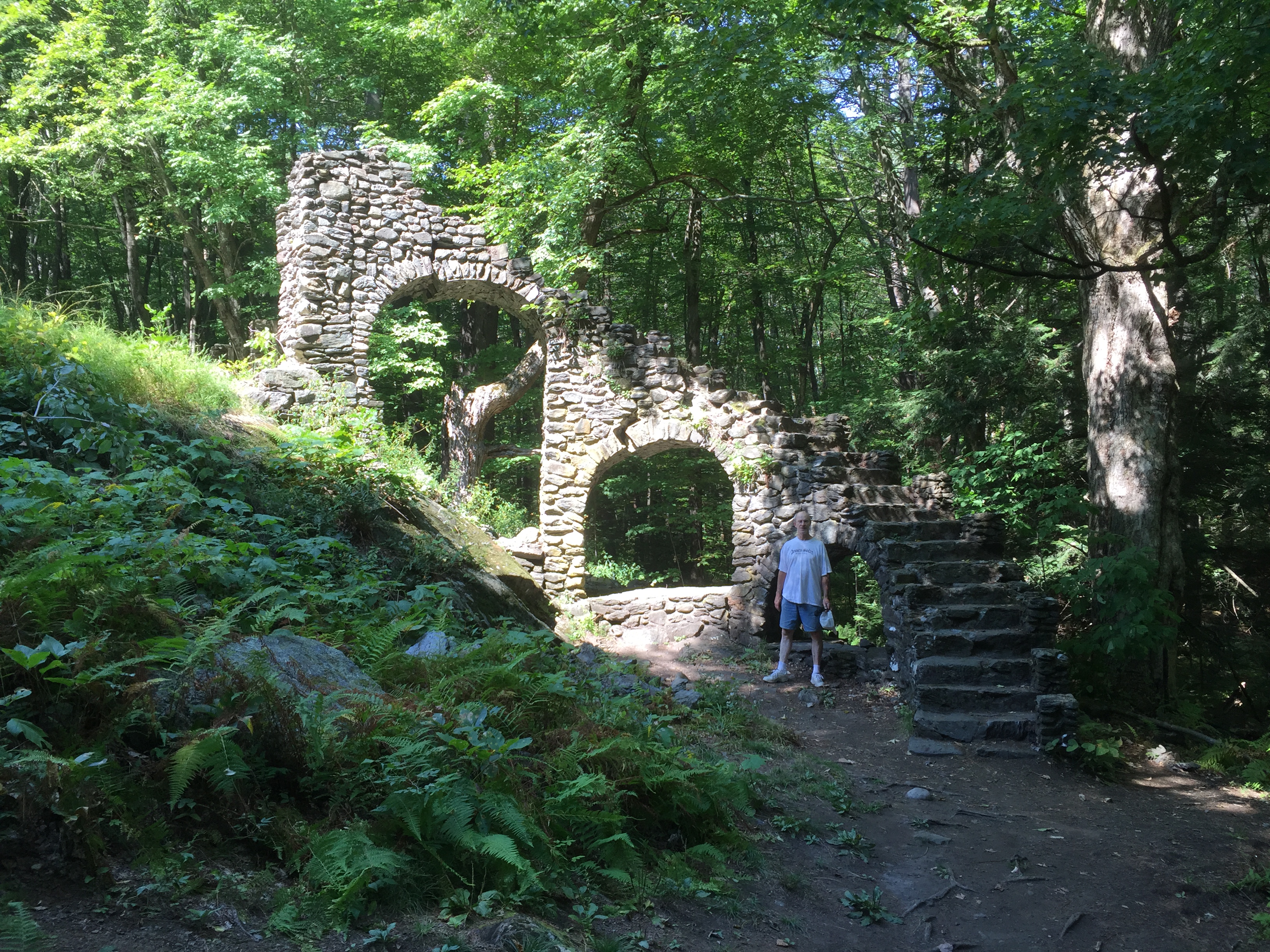 We did venture out to see the countryside. One of the more interesting things we found was this Stairway to Nowhere in the middle of a forest. It had been part of a castle built in 1931 by an eccentric widow, Madame Sherri. The house burned down in 1962. This nice stone stairway and a fireplace and a few other ruins remain.