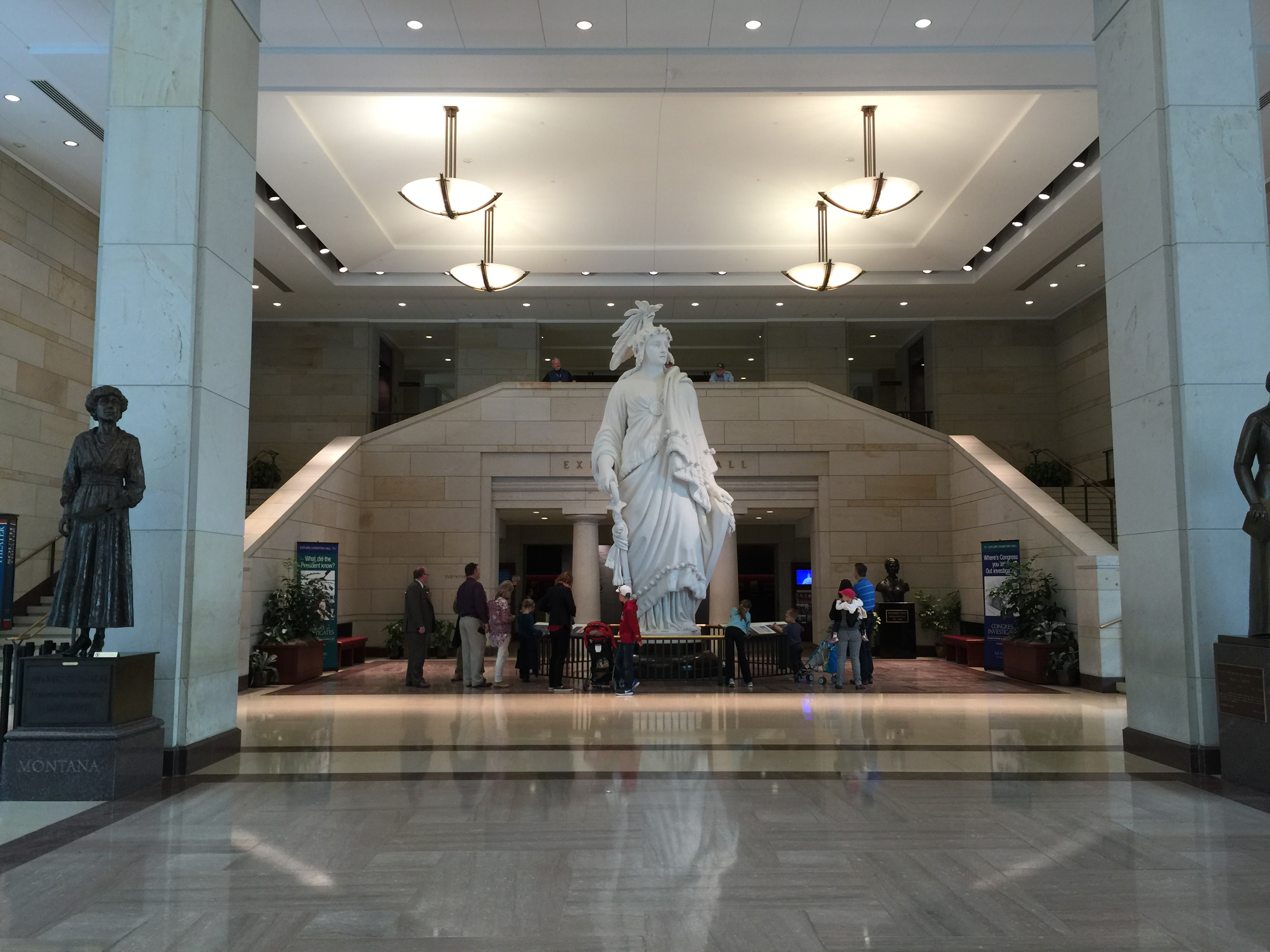 The Capitol building is just a few block’s walk from the station, and that was our main goal today. We have toured it before so this time we just walked around ourselves. Our main focus this time was to visit the Exhibition Hall, home to E Plurbus Unum – Out of Many One, an exhibition that tells the story of the United States Congress and the Capitol. The Exhibition Hall is located behind the 19.5′ tall plaster model for the Statue of Freedom that tops the dome on the capitol building. Unfortunately, photography was not allowed in the Exhibition Hall 😦