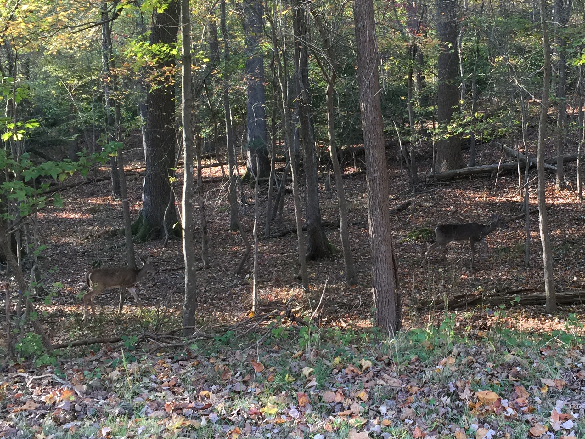 We are in a wooded campground in Greenbelt National Park just north of Washington DC. We’ve been here a few times before, it’s pretty old and rustic and hard to fit our 34′ rig into the spaces, but we managed. It’s cheap, only $8/night. That’s the half price with Bernie’s National Senior Pass. But for that we have no electricity or water connections. It’s been in the 60’s during the day and 40’s at night. We paid for two nights, last night and tonight. We frequently see deer.
