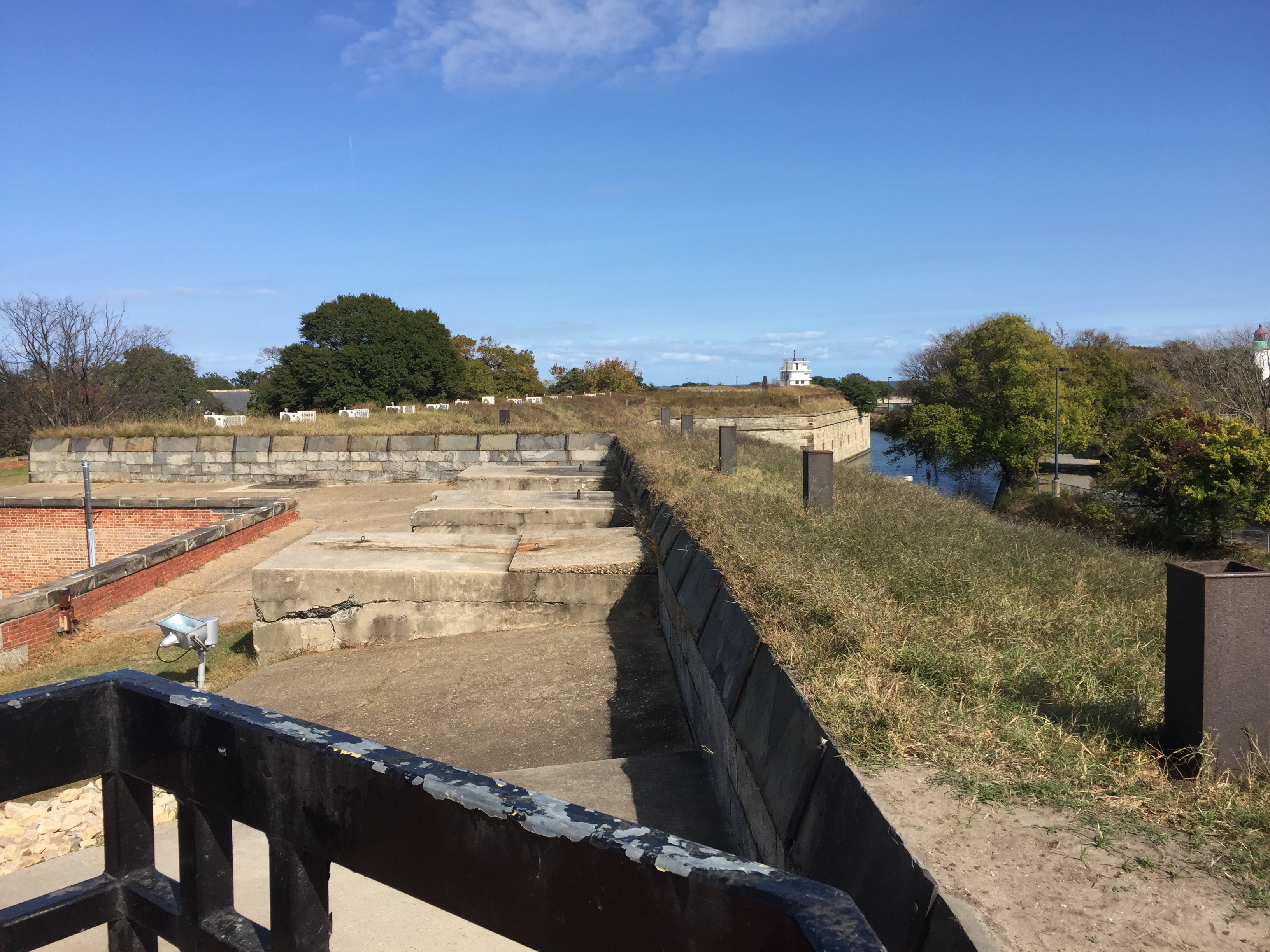 Our niece, Lyndsay, lives about an hour east of where we are so we went to meet her and her husband, Brett, for lunch in Hampton, Virginia, which was a half-way point. We enjoyed a good meal and conversation. Good to see them both again. After they left we went about a mile north to see Fort Monroe.