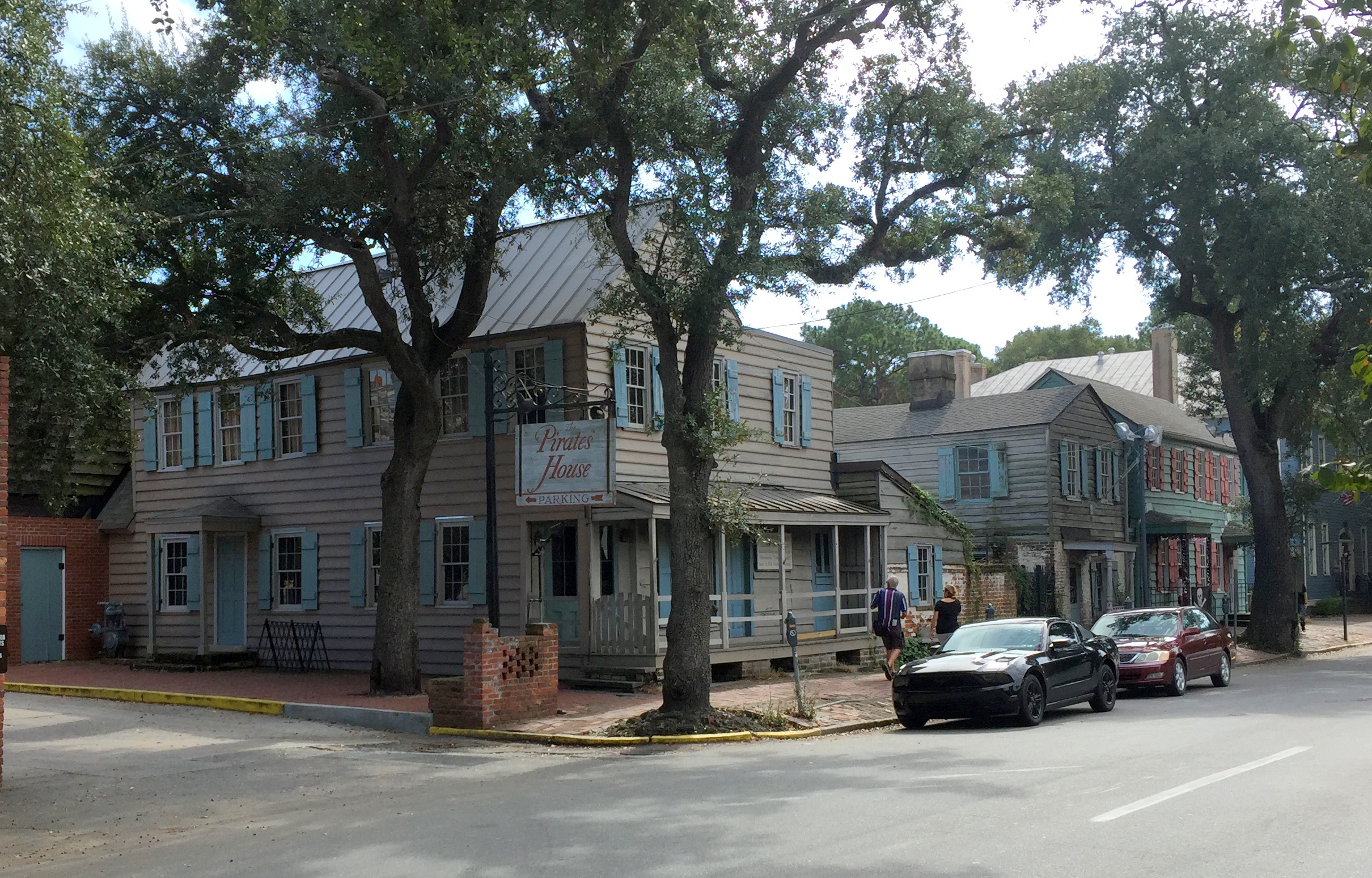 At the end of River Street and up a block is the Pirates’ House, the most historic spot in the state of Georgia. It’s been here since the 1700’s. In 1753 it was an inn for seafarers and a meeting place for pirates and sailors. There are stories of a tunnel under the inn that led out to the river. Passed-out men would be carried out to the ships and taken out to sea. The house has been added on to and what looks like three or four houses is all a popular restaurant. We ate there for lunch. I saw fried catfish, collard greens, black-eyed peas, sweet potatoes, fried okra, gumbo, and fried chicken on the buffet, and peach cobbler for dessert. We were given a basket of the bestest softest fluffy biscuits ever with our meal. And I did see a pirate in there!