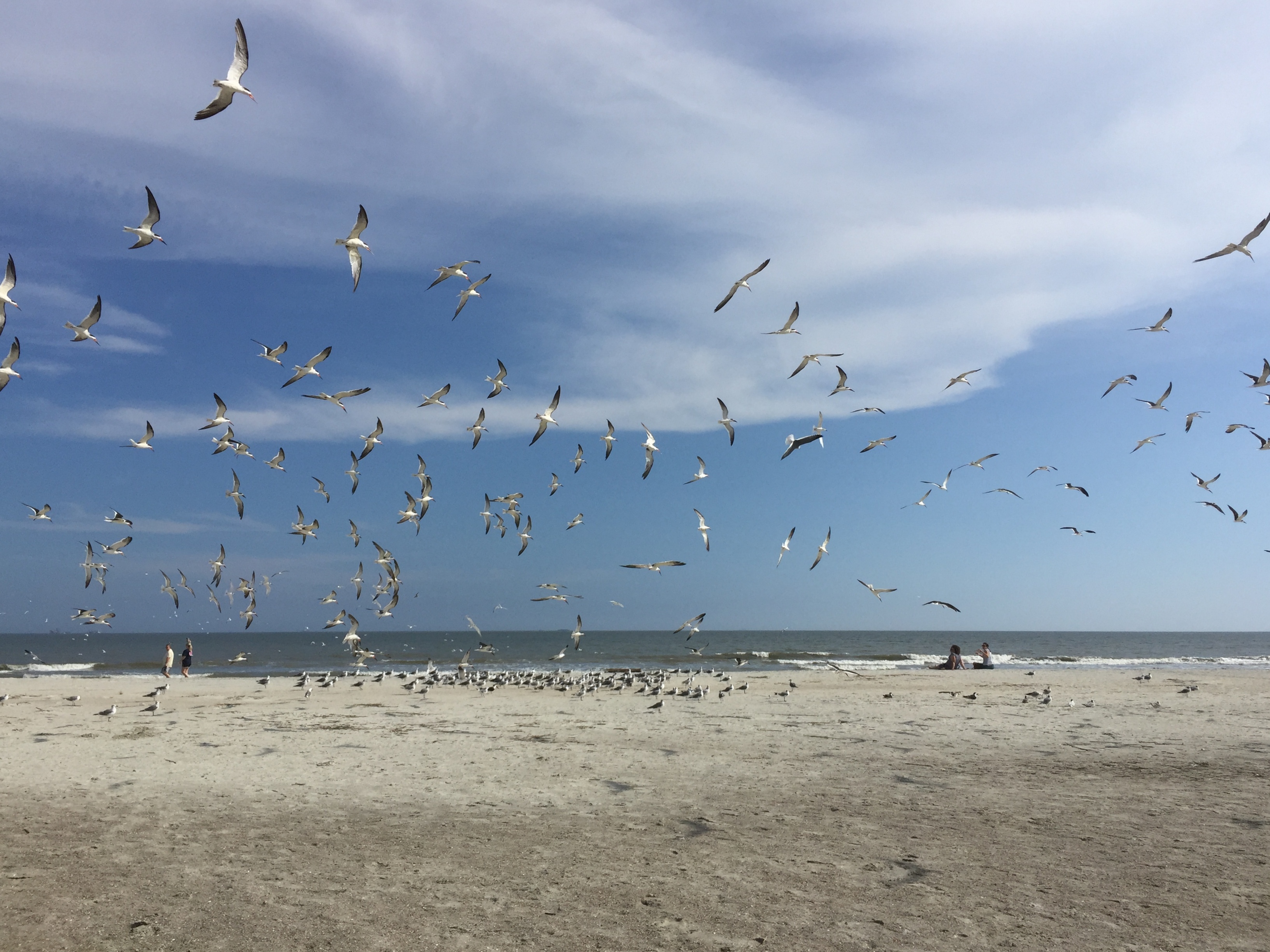 Earlier this week super high tide levels flooded the only road access out to Tybee Island on the Atlantic Ocean and flooded some of the neighborhoods out there as well. News reports say this was the third-highest tide since record keeping began in 1935. Sea level rising? We didn’t hear any reports today so we went to see the ocean. It was pretty quiet. And even though the temperature rose above 80 degrees there weren’t very many people out.