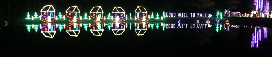 The parents and children followed Santa inside but we did not stay. We said goodbye for now to Lois and Klea and went home. Later, Bernie and I drove out to Wales West RV Park & Light Railway. Our friends, Bob and Bobbi, are workcamping there. Besides being a nice RV park it is a family attraction light rail, all decorated up for Christmas. There is also a petting zoo, hay ride, pony rides, and more. Bob had train tickets for us and we boarded the Arctic Express and rode the rails around the RV park and through the woods past a bazillion lighted displays to the North Pole.