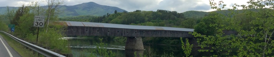 It was raining this morning and we didn’t want to spend the day inside so we made a little road trip up the New Hampshire / Vermont border about 60 miles to see the Cornish-Windsor Bridge. The 460 foot length makes this the longest wooden covered bridge in the United States and the longest two-span covered bridge in the world. It spans the Connecticut River between Windsor, Vermont, and Cornish, New Hampshire. It is a National Historic Civil Engineering Landmark and is listed on the National Register of Historic Places.