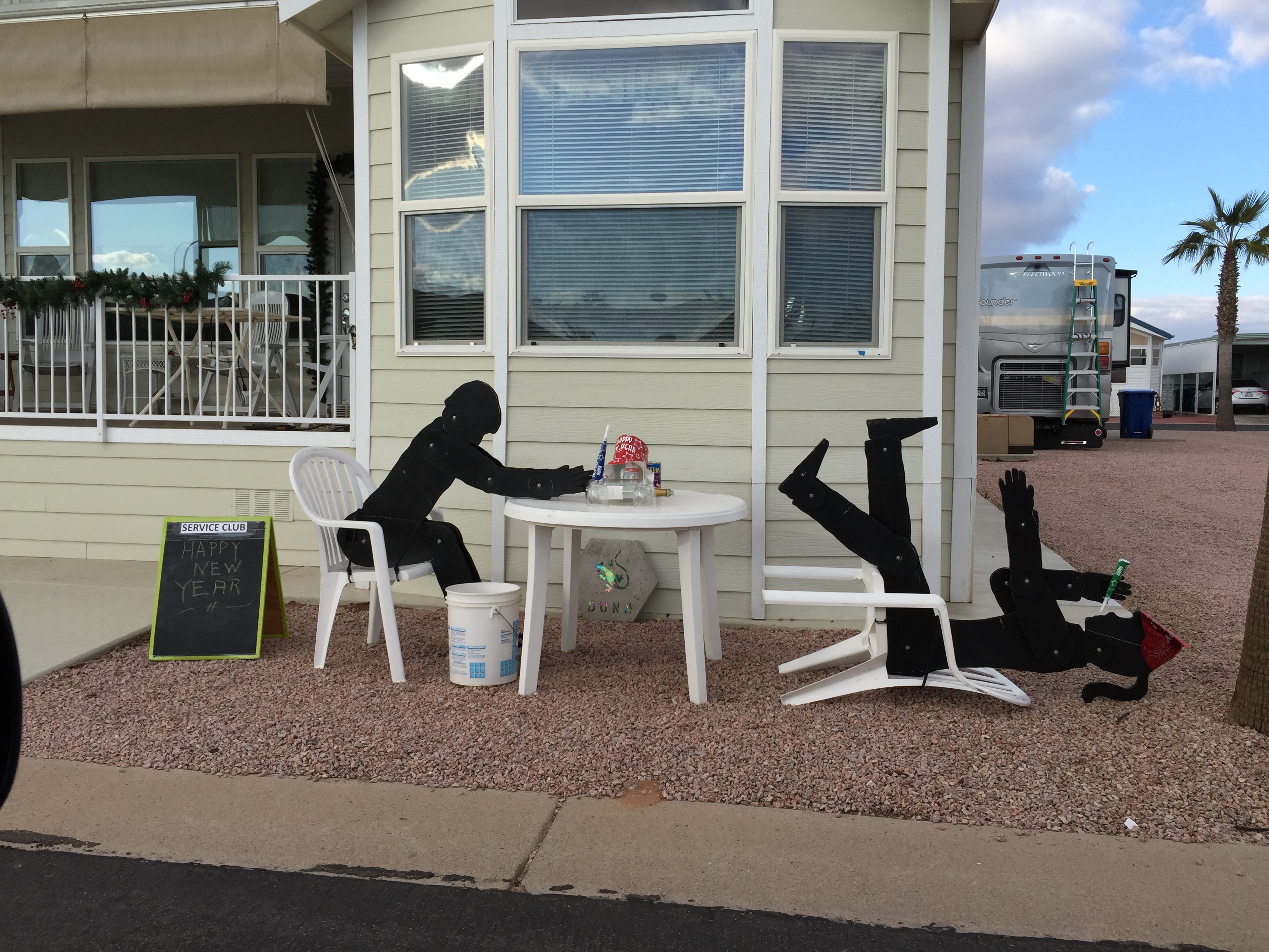 Tonight is Christmas Eve and Mesa Regal has organized their 3rd Annual Resident Christmas Golf Cart Parade. There were over 50 decorated golf carts, a few bicycles, and one smart car. They were sure having fun, lots of horn “beeps” and laughing and Christmas music playing. A few even tossed candy.