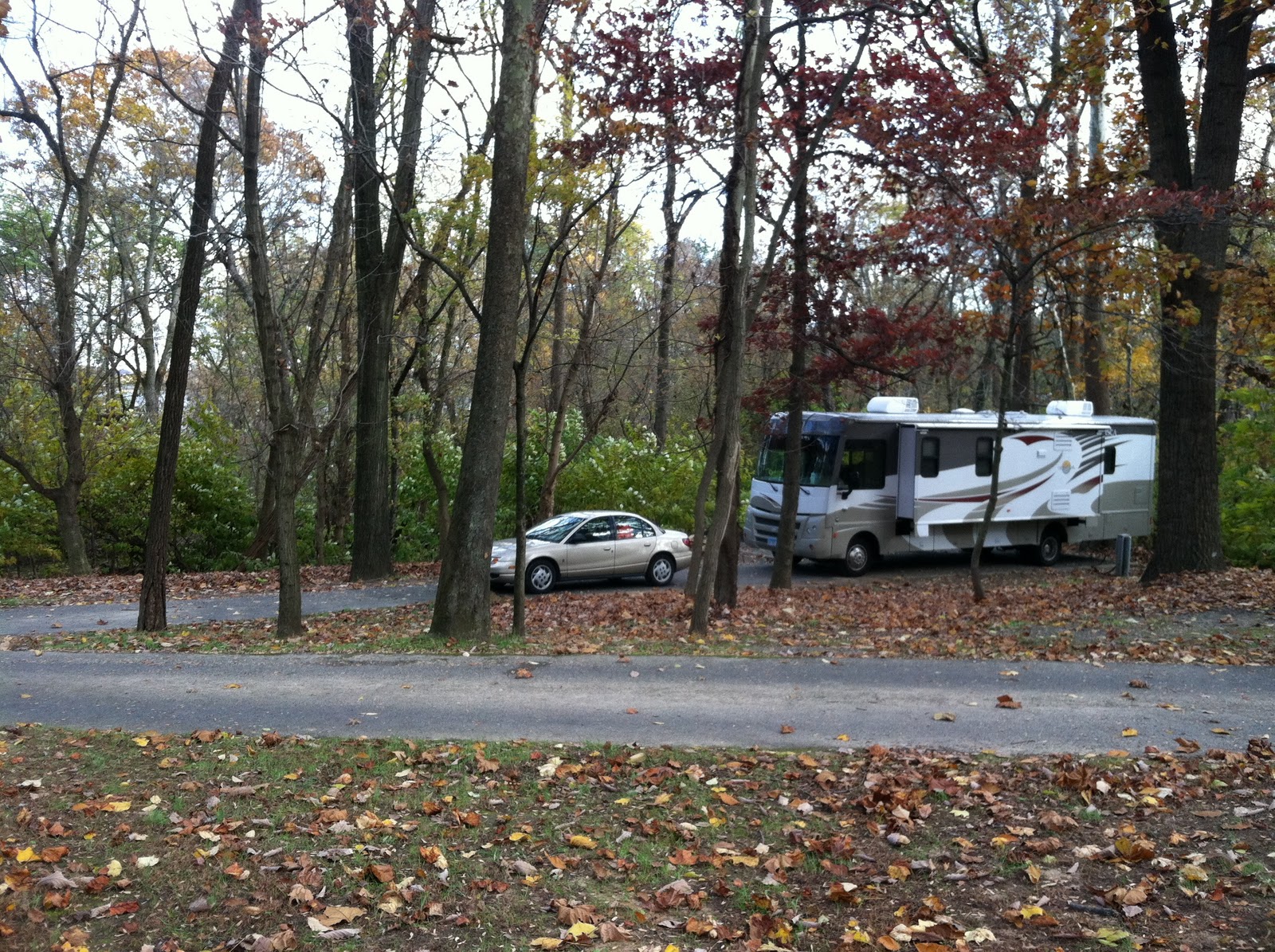 We had not made advance reservations before we got to this campground and it was already booked up for the weekend. So, they allowed us to park in a loop that had already been closed for the season. They gave us a premium spot (long and level). We have electricity but no water here, but that’s ok because we filled up our tank before we moved, so we’re good for a few days. They did give us a price break.